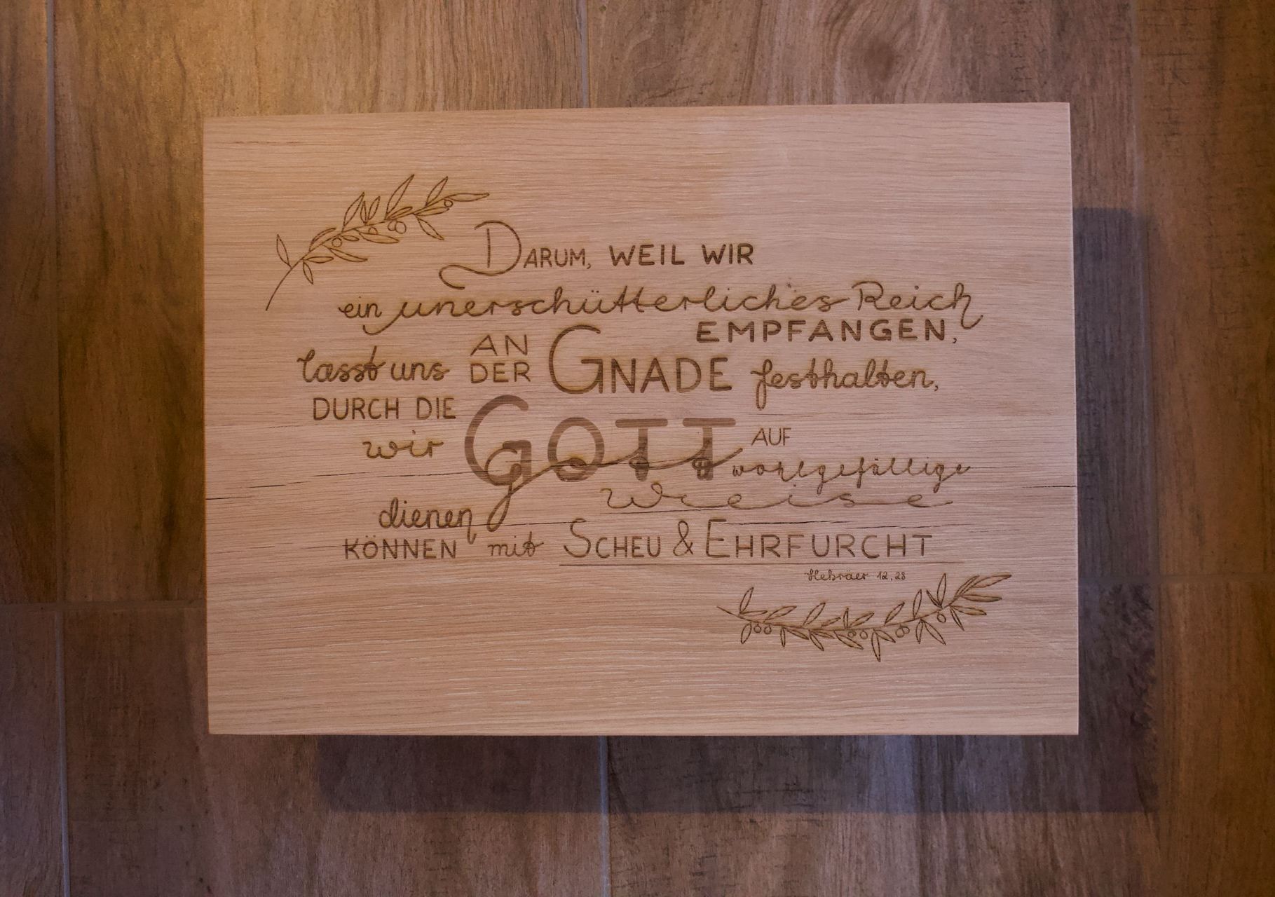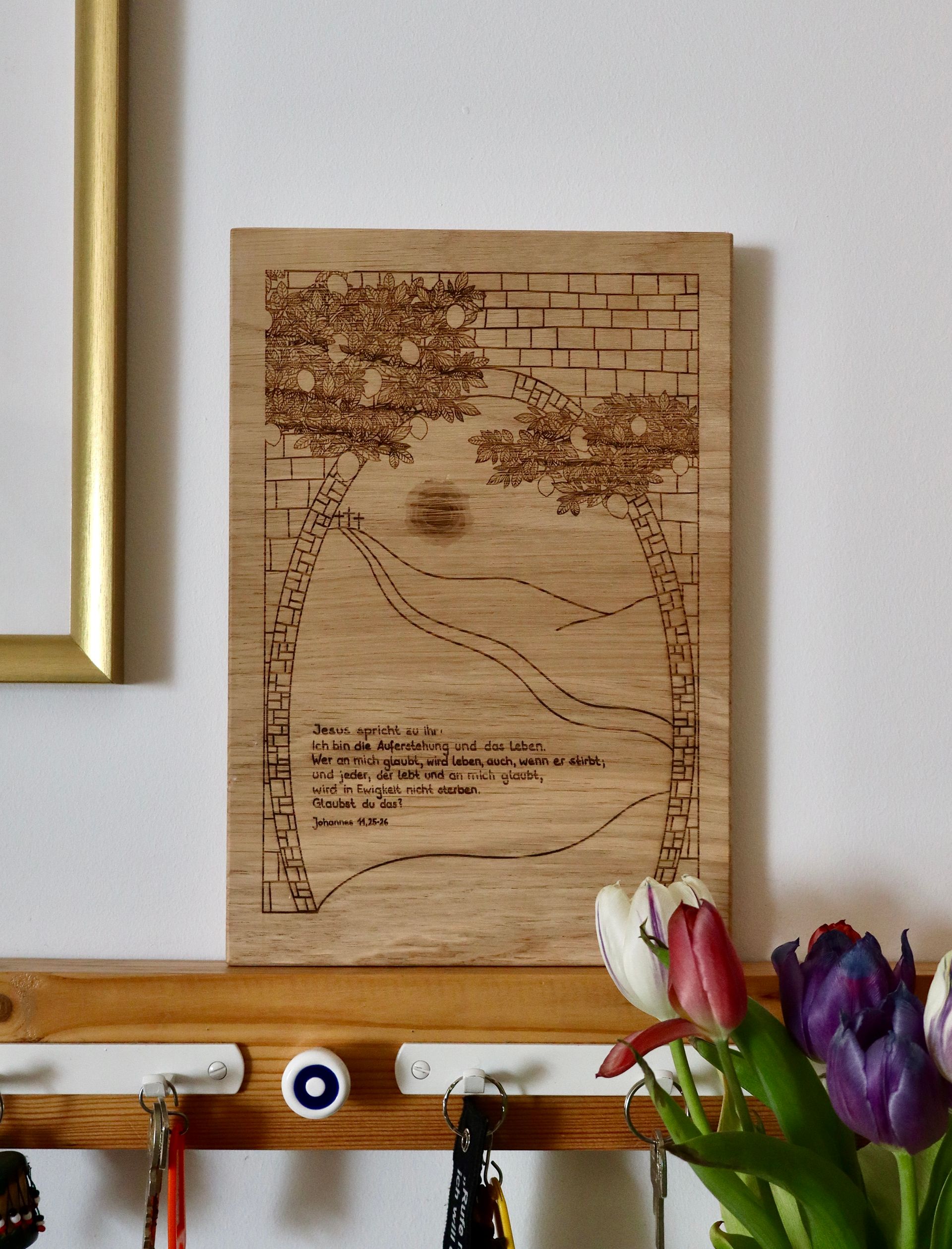Unsere bisherigen Projekte umfassen die Gestaltung von Trau- bzw. Bibelversen, Eingangsschilder und Geburtstafeln.